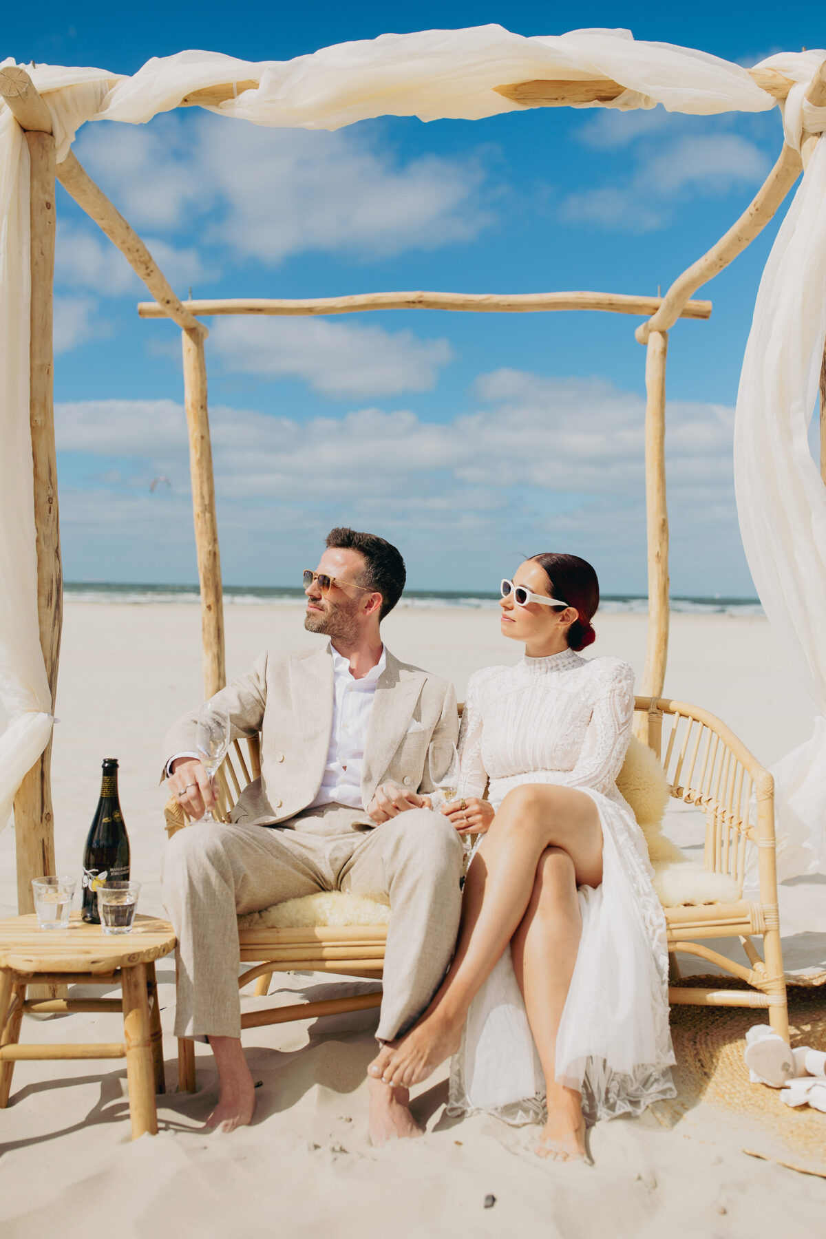 Daarnaast: de ceremonie was op het strand met kans op wind. Veel wind. En dat was uiteindelijk ook zo, windkracht vier. Het was daardoor extra fijn om een heel strak, vastgelakt kapsel te hebben dat geen kant op ging.