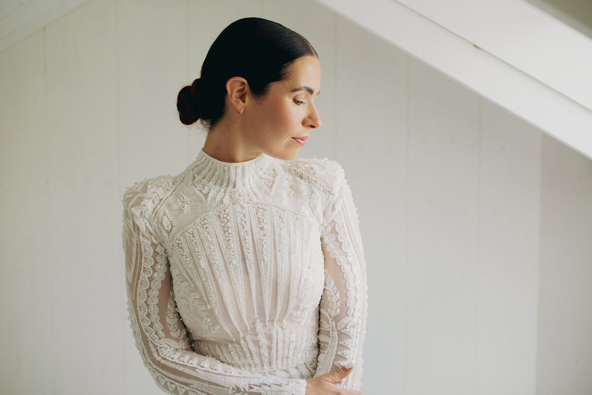 Eerst dacht ik: ik ga mijn haar sówieso los dragen. Lekker veel volume, slag erin. Maar toen ik eenmaal de jurk had uitgekozen en hem een paar keer aan had gehad (met passen en met ophalen) toen wist ik: ik wil deze prachtige jurk niet bedekken met mijn haar. Ik dacht meteen: dan moet het een strakke, lage knot worden. Ik heb ook nog even gespeeld met het idee van een hele hoge staart, en dat heb ik wel uitgeprobeerd, maar dat voelde niet als ‘mij’. Ik vond het heel mooi passen bij de jurk om het juist heel eenvoudig, strak en chic te doen. Los opgestoken past ook niet bij mij, zo draag ik het nooit, en vond ik ook niet matchen bij de jurk.