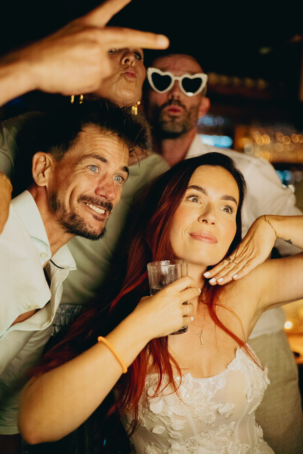 ’s Avonds, voor het feest, had ik een andere outfit, een kort strapless jurkje. Ik wilde heel graag mijn haar los, maar had echt geen tijd om het te wassen en föhnen (ik had ongeveer 20 minuten voor omkleden, haar doen en make-up bijwerken). Ik was bang dat als ik de knot eruit zou doen, er allemaal schilfertjes van de producten in mijn haar zouden komen. Ook hierbij vroeg ik Chat om hulp. Wat supergoed heeft gewerkt was alles zachtjes uitborstelen met een warme föhn erop. Door de warmte van de föhn was het alsof het product in mijn haar als het ware ‘smolt’ en daardoor kreeg ik géén stukjes of viezigheid in mijn haar! Kijk, het zat heus niet perféct, het liefst had ik een uur de tijd gehad om het weer helemaal mooi te föhnen en krullen, maar dat zou van de tijd afgaan waarop we lekker op de dansvloer konden staan met elkaar en onze vrienden en familie, dus ik vond het prima dat het een beetje rommelig was. Ik was allang blij dat ik het los kon doen en dat het er goed uitzag!