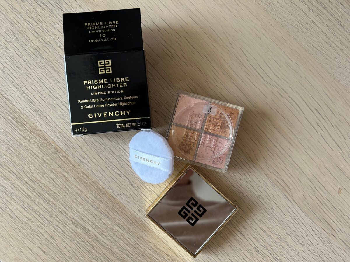 Een poeder highlighter van Givenchy, er zitten twee kleuren in maar die mix je voor gebruik een beetje door elkaar. Echt los van elkaar gebruiken lukt denk ik niet.
