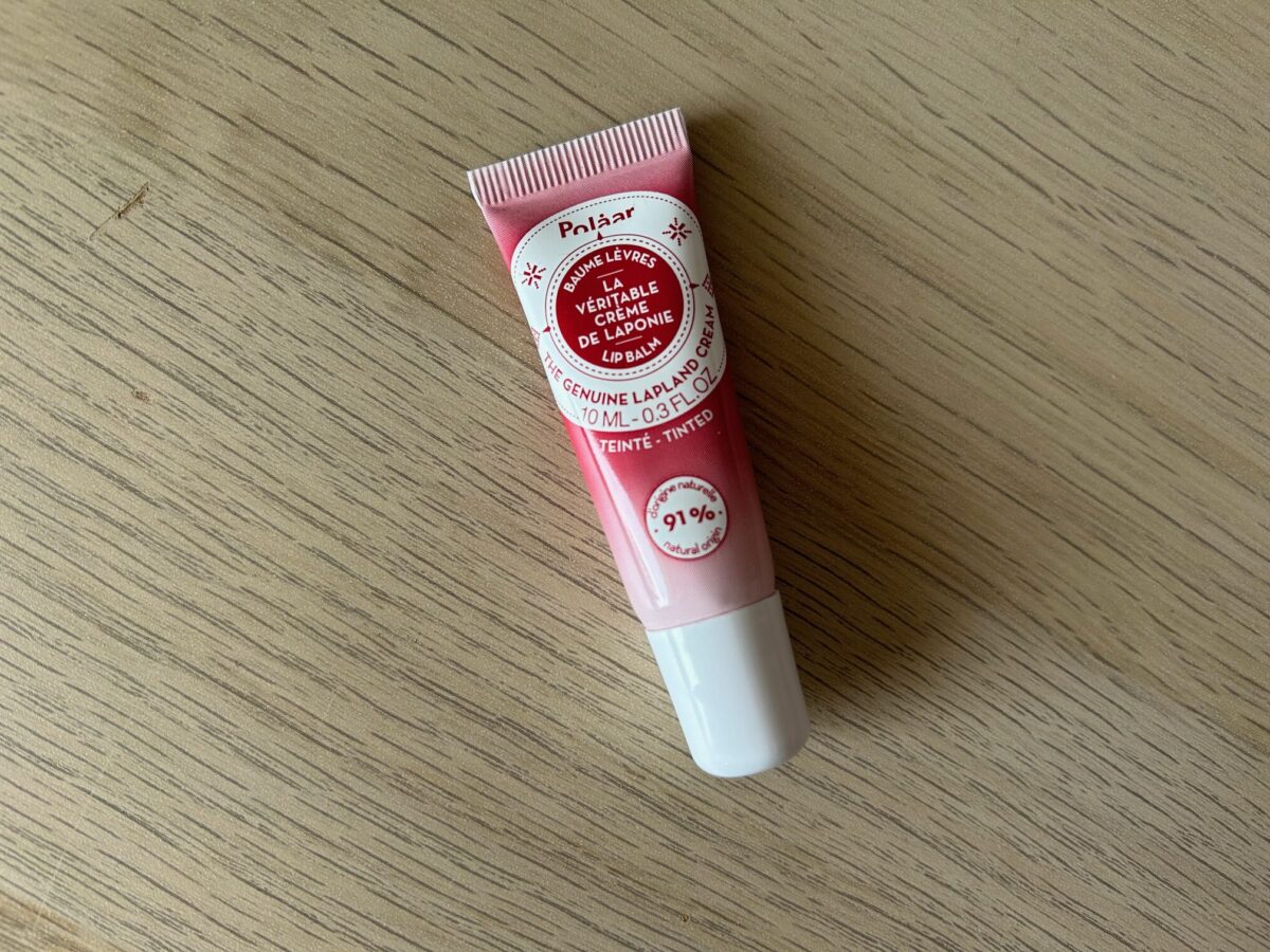 Een gekleurde lipbalm van Polàar, een merk uit Lapland.