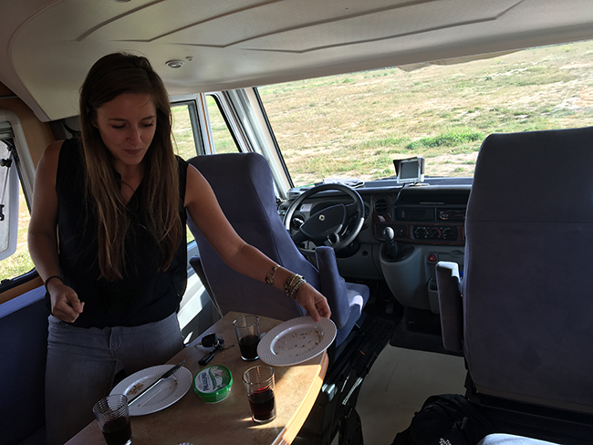 Zo’n camper huren is natuurlijk wel even wat anders dan een hotelkamer boeken of een appartement betrekken voor een paar dagen. Er zitten wat gebruiksaanwijzingen bij, maar met z’n drietjes hadden we het gauw genoeg door. Na leuke tips van Eduard is het tijd om op pad te gaan! Zonder uitgestippeld plan: we gaan rijden langs de kust en zien vanzelf wel op welke leuke plekken we uitkomen. En is iets niet leuk, dan rijden we gewoon verder. Dat is het fijne aan een camper, lijkt me: je hebt altijd je huisje bij je.