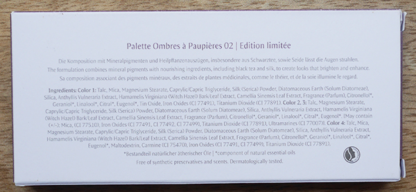 Dan het Dr. Hauschka Eye Shadow Palette 02. Ook deze zit in een speels doosje van grof karton.