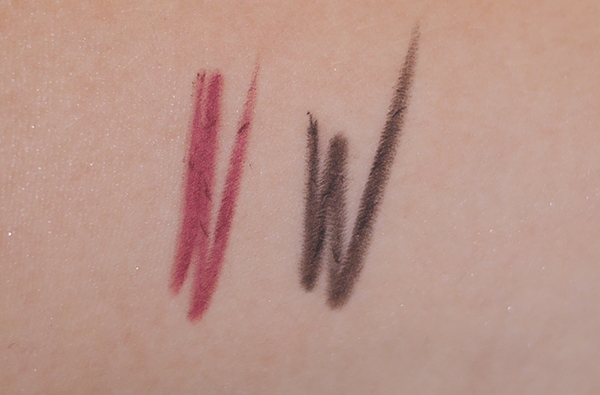 De kleuren zijn erg mooi! De paarsrode tint is wat gewaagder, de zwarte tint is heel veilig en die combinatie is wel erg leuk. Ik gebruikte beide kleuren bij de ooglook hierboven, de roodpaarse tint zit onder mijn ogen, de zwarte tint langs mijn bovenste wimperrand. Het is een vrij stevig potlood dat niet al te makkelijk uit te smeren is, maar met een beetje moeite en snel werken lukt het best. En dan zit het muurvast tot je het er zelf weer afhaalt. Mooi! Die rode tint ga ik zeker vaker gebruiken.
