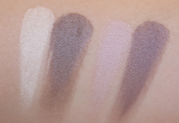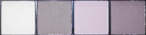 Het palet bevat vier kleuren oogschaduw, 7,2 gram in totaal. De kleuren zijn koel en niet te heftig, de donkerste tinten zijn niet heel intens. In de deksel zit een vrij grote spiegel.