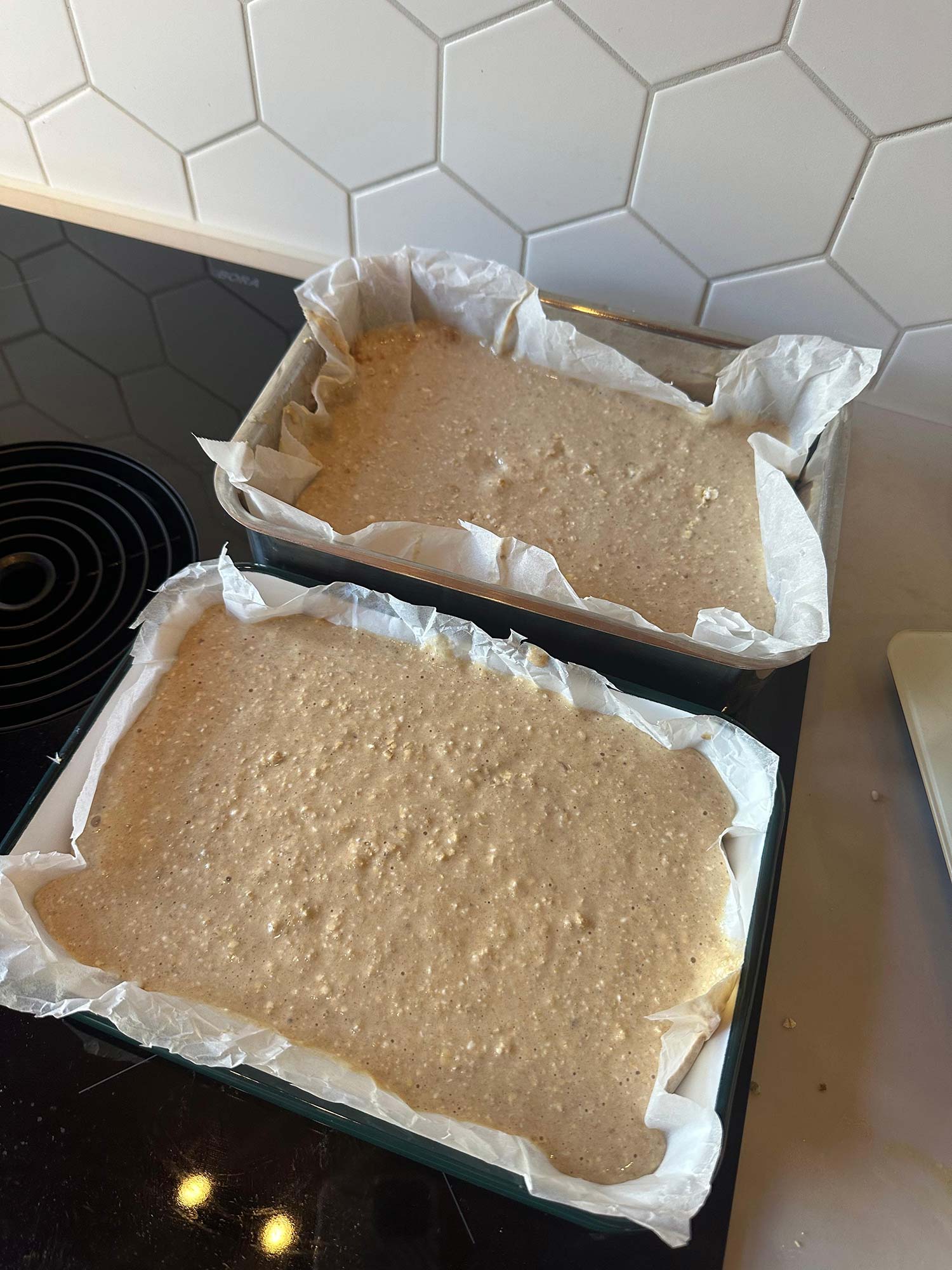 Dit is het getweakte recept van mijn bananenbrood, waardoor er meer eiwit inzit. Ideaal als je veel sport of als je gewoon graag wat meer eiwitten binnenkrijgt. Ik snijd dit brood in 10 plakken en dan neem ik er 2 als ontbijt, met wat pindakaas en fruit. In 1 plak zit ongeveer 9 gram eiwit (in dat ontbijt dus zo’n 18 gram), voor als je dat handig vindt om te weten.