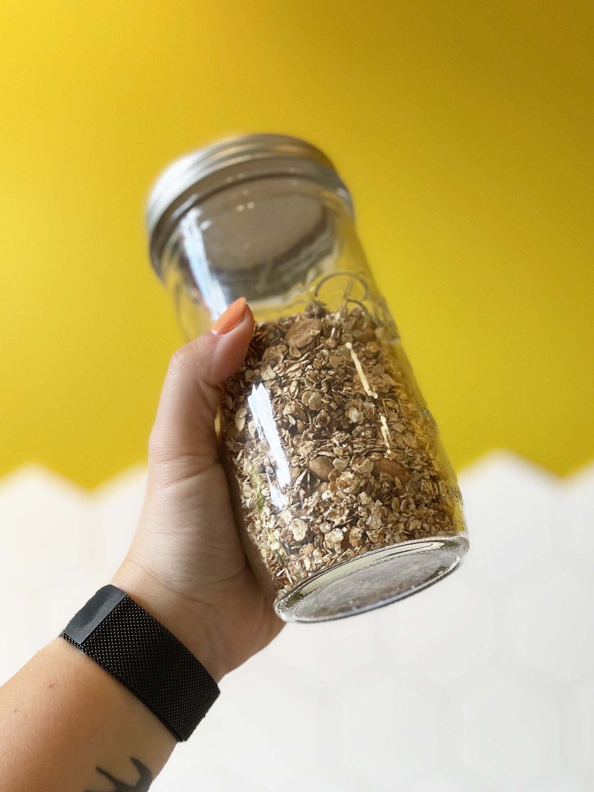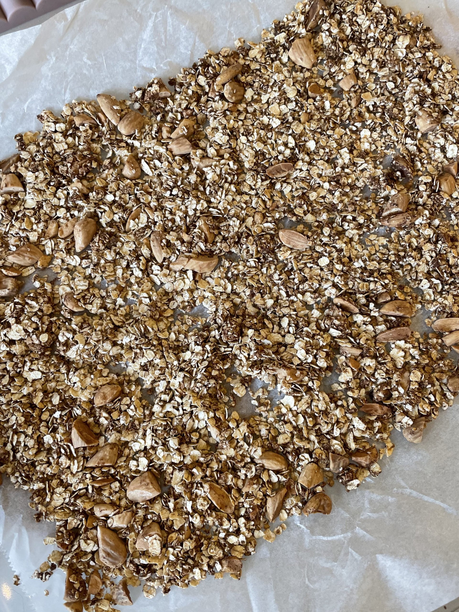 Het ziet er mega feestelijk uit, terwijl het toch zo simpel is. En die muesli is echt zo de moeite waard om zelf te maken. Je kan natuurlijk variëren met wat je er in doet, zoals meer of andere noten, of gedroogd fruit. Je kan er na het bakken ook stukjes chocolade doorheen doen.