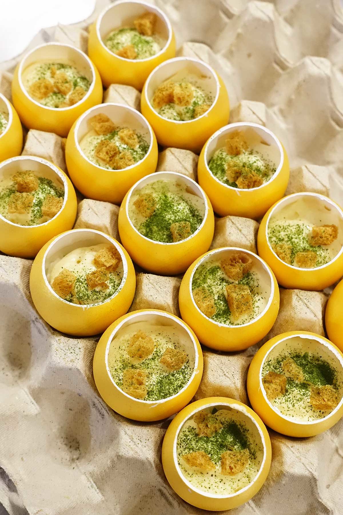 We beginnen met een hapje: het gouden ei.