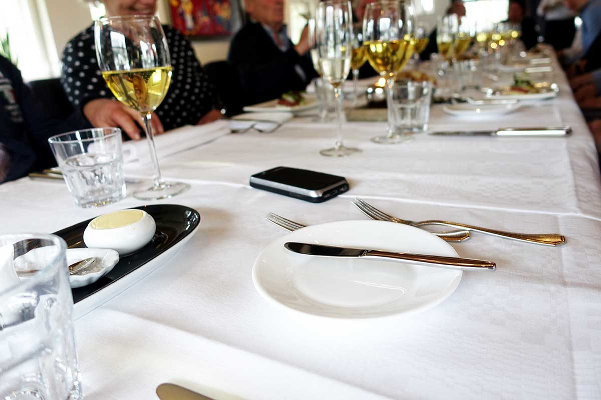 Nadat we hebben gezien hoe de asperges geteeld worden, hebben we natúúrlijk alweer trek gekregen. We komen weer met zijn allen bij elkaar bij restaurant De Bagatelle in Mariënheem. Dit is een heel sfeervol restaurant dat al sinds 1747 bestaat en waar in het aspergeseizoen natuurlijk volop aspergemenu’s te bestellen zijn.
