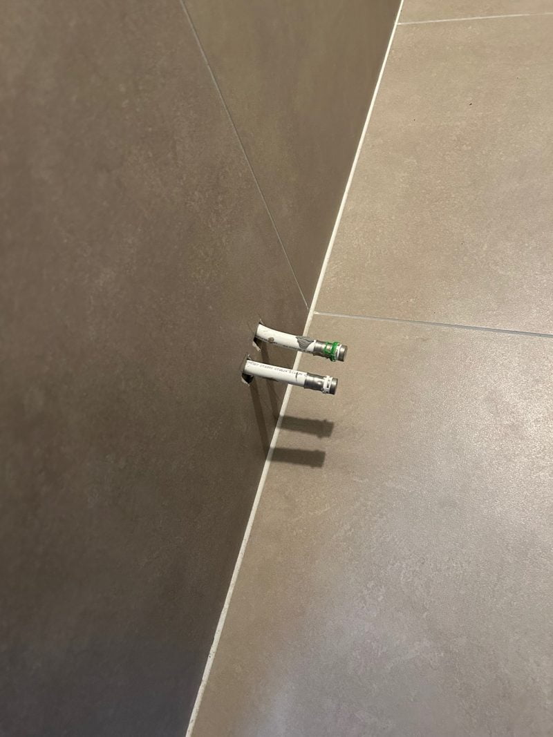 Tot slot, de radiator. We hebben de radiator -die foeilelijk was- eruit gehaald omdat we deze in ons oude huis nooit gebruikten. We hebben de buisjes nog wel laten zitten voor het geval we ons bedachten. Nu Novae er is merken we het belang van een verwarmde badkamer want het is natuurlijk heel snel koud voor zo’n kleintje. Maar, we hebben nu nog steeds geen radiator haha. Normaal zijn we geen mensen die dit soort dingen laten zitten, maar dit klusje blijven we maar voor ons uitschuiven. Dit hadden we gewoon gelijk moeten doen!