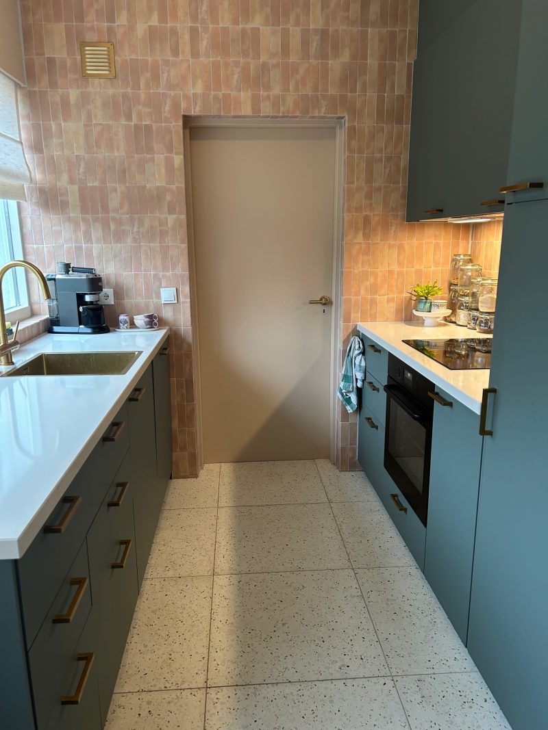Deze terrazzo tegels waren duur, maar we vonden ze gelijk helemaal geweldig. Een pastel terrazzo, HOE DAN?! Ik vind het nog steeds een prachtige tegel, maar omdat het een natuur product is en geen keramieken tegel (die heel veel kunnen hebben) is het eigenlijk helemaal geen handige tegel voor de ruimtes waar wij hem hebben liggen. De gang en de keuken; de stukken vloer die het snelst smerig worden haha. Op sommige plekken zijn de tegels al gebarsten en in de keuken hebben we ook wat vlekken die we er niet meer af krijgen. Ik was achteraf veel liever voor een goedkopere keramische keuze gegaan die ik makkelijk schoon kreeg en waar je ook hele toffe keuzes in hebt tegenwoordig.