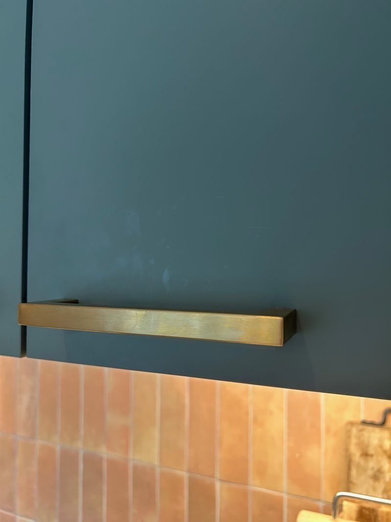 Wat een goede zet was: de deuren en radiatoren meeschilderen in de muurkleuren. Dit staat heel mooi en rustig. De deurklinken vervingen we voor vintage gouden, maar deze zijn achteraf een beetje te klein en te gammel. Daardoor raken ze een beetje los, en vooral bij de deur naar de bijkeuken maakt het eigenlijk de hele deur stuk. Het zijn ook oude deuren, dus wellicht moeten we die gewoon eens vervangen in de toekomst.
