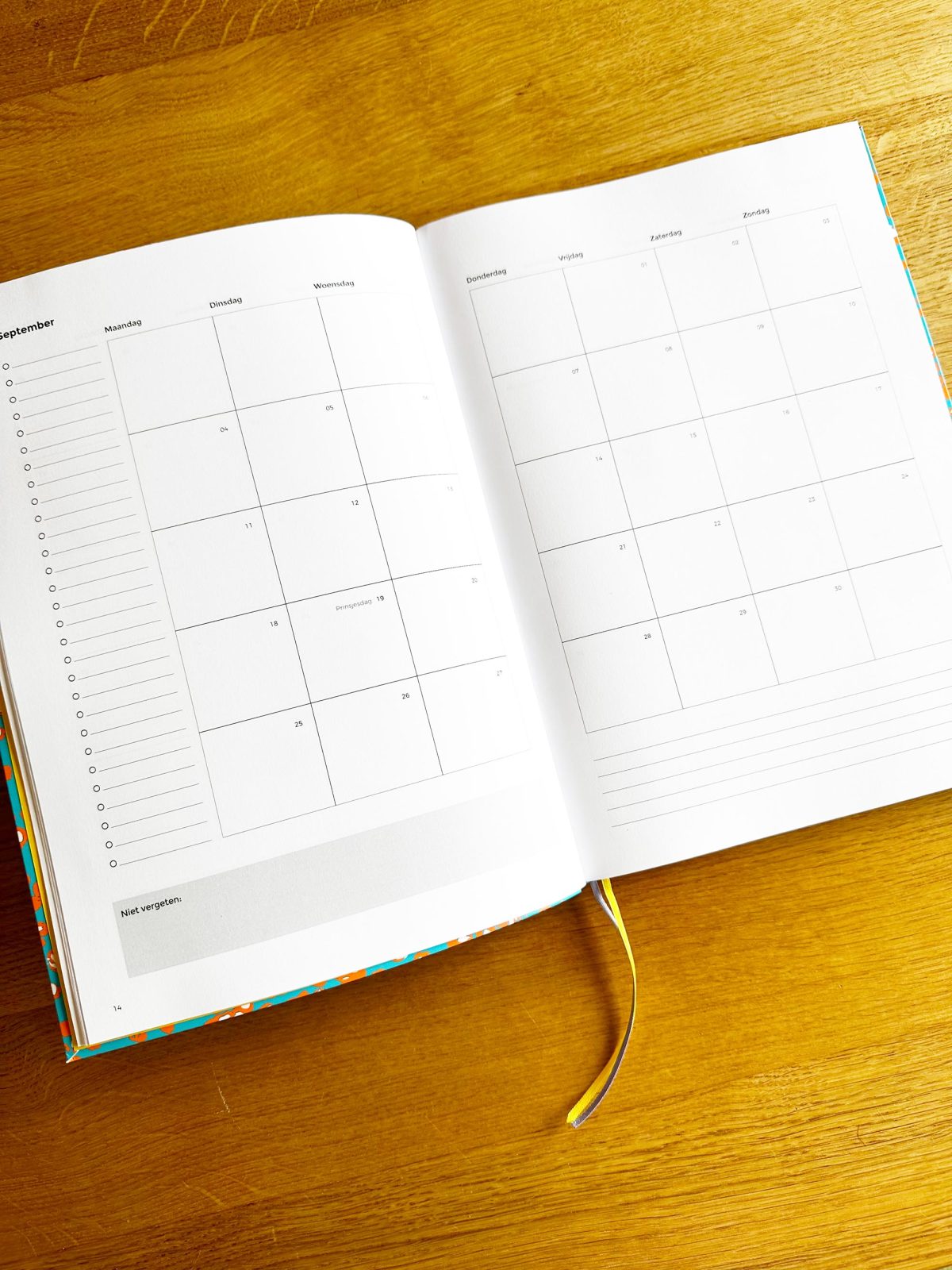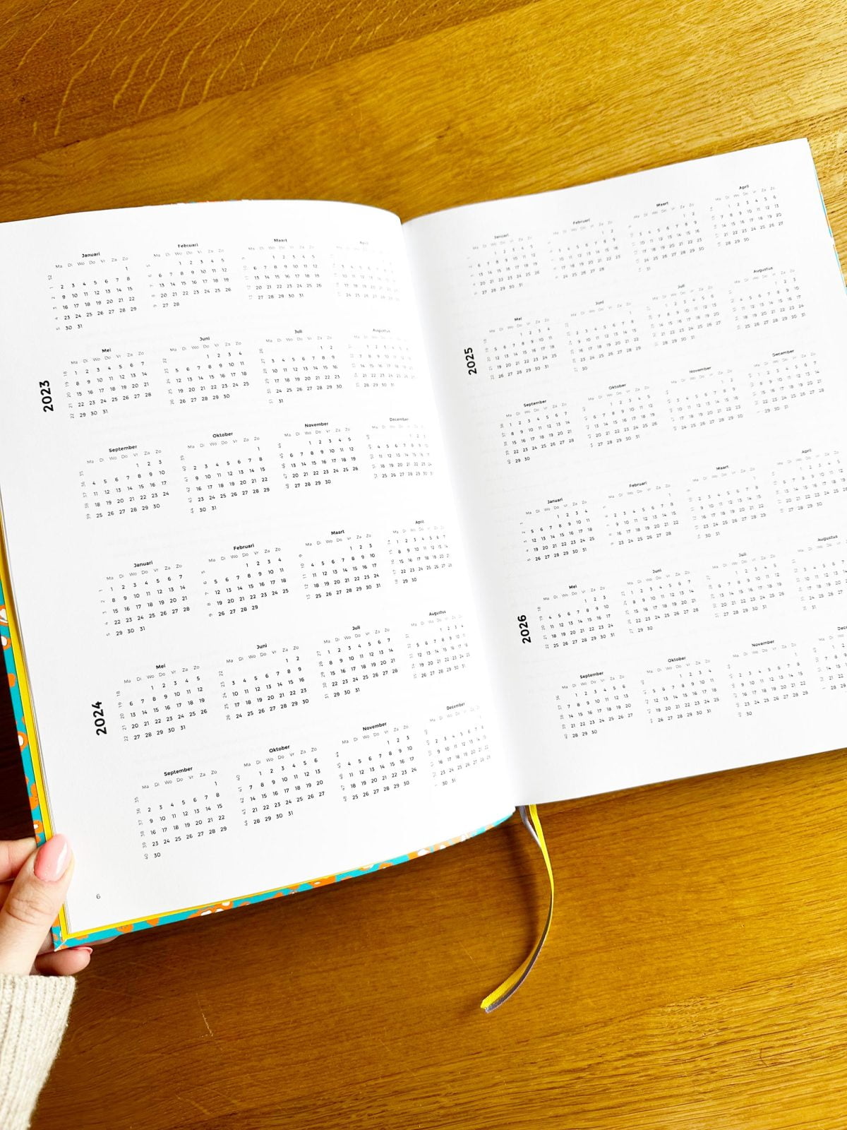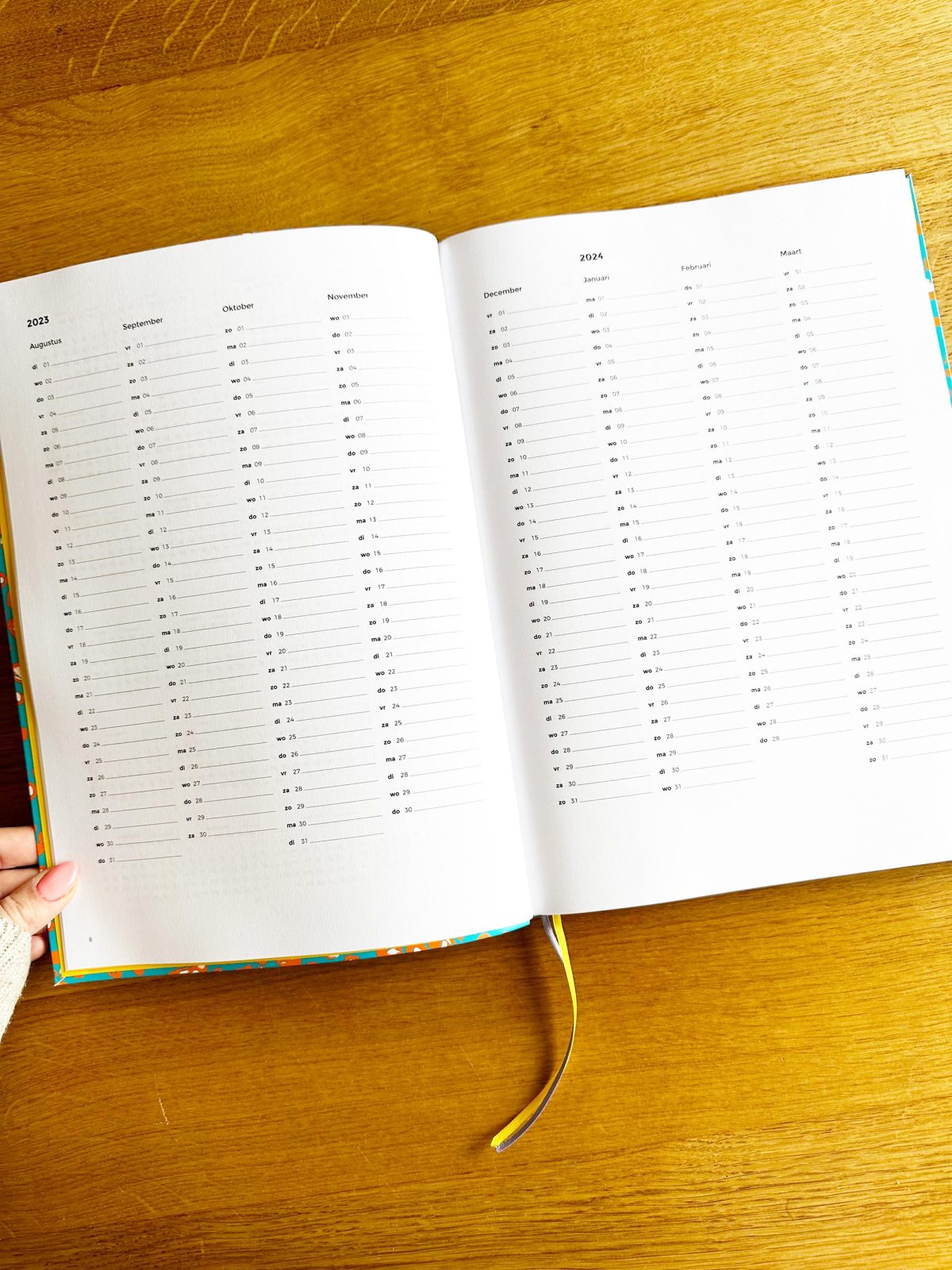 Hieronder vind je foto’s van dit formaat planner. Let op: dit zijn foto’s van de 2023/2024 planner omdat we de 2024 planner nog niet binnen hebben. Dit is dus puur ter indicatie hoe de binnenkant eruit ziet!