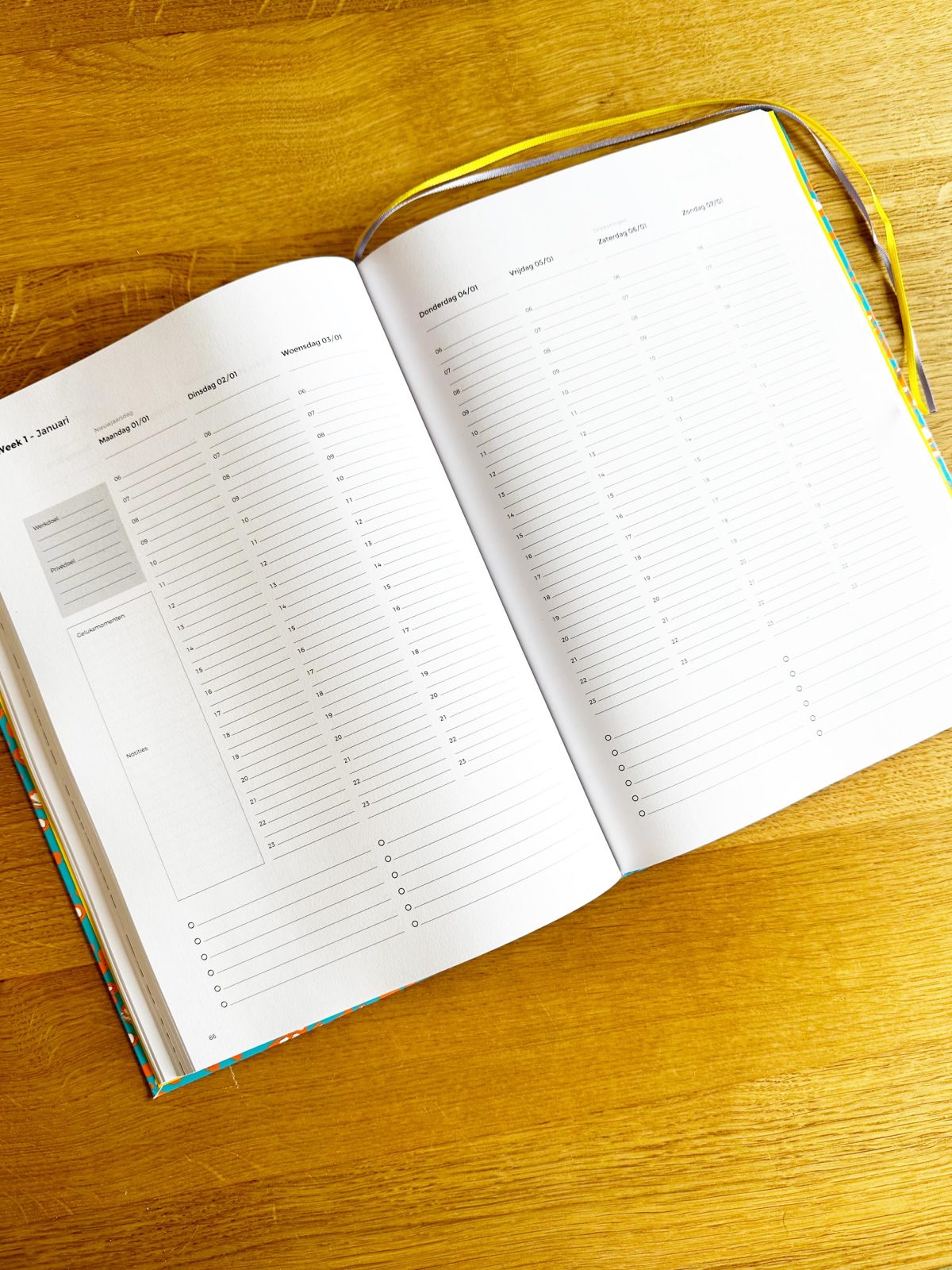 Let op, de kleuren zijn dus anders bij de 2024 planner, dit is puur om je een indruk van de indeling van de planner te geven.