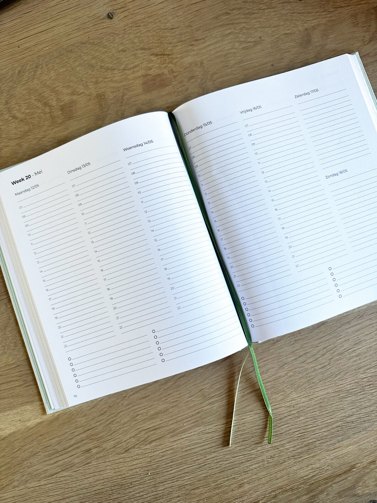 Hieronder vind je foto’s van de binnenkant van de planner.