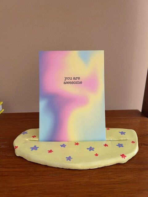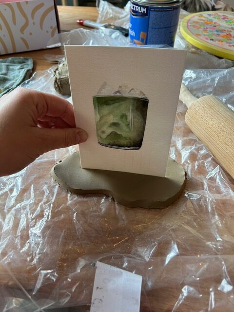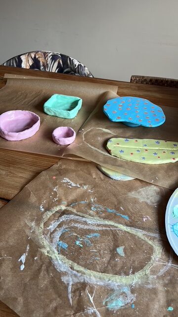 Je gaat dan gewoon lekker met je handen aan de slag. Je vindt op Youtube en Pinterest heel veel ideeen om dingen te kleien. Ik ging voor een kaarsenplateau hier, en een kaarten houder.