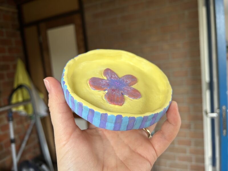 Deze foto is nog met de Pott’d klei, die vond ik zelf eigenlijk minder fijn werken. Hij breekt ook sneller, dus ik raad echt met klem die witte klei van DAS aan, je hebt daar een kilo van voor €5,24.