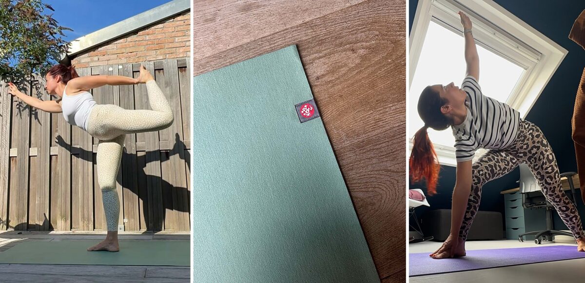 Soms vragen mensen me of ik niet liever in een yogastudio les zou volgen, maar ik vind het heerlijk om het gewoon thuis te doen. Het maakt de drempel superlaag voor mij. Gewoon m’n matje uitrollen, YouTube aan en gaan. Ik doe het letterlijk overal: in de keuken, de tuin, op zolder of op de slaapkamer. En op vakantie doe ik het daardoor ook altijd heel makkelijk, ik neem altijd mijn reis yogamat mee.