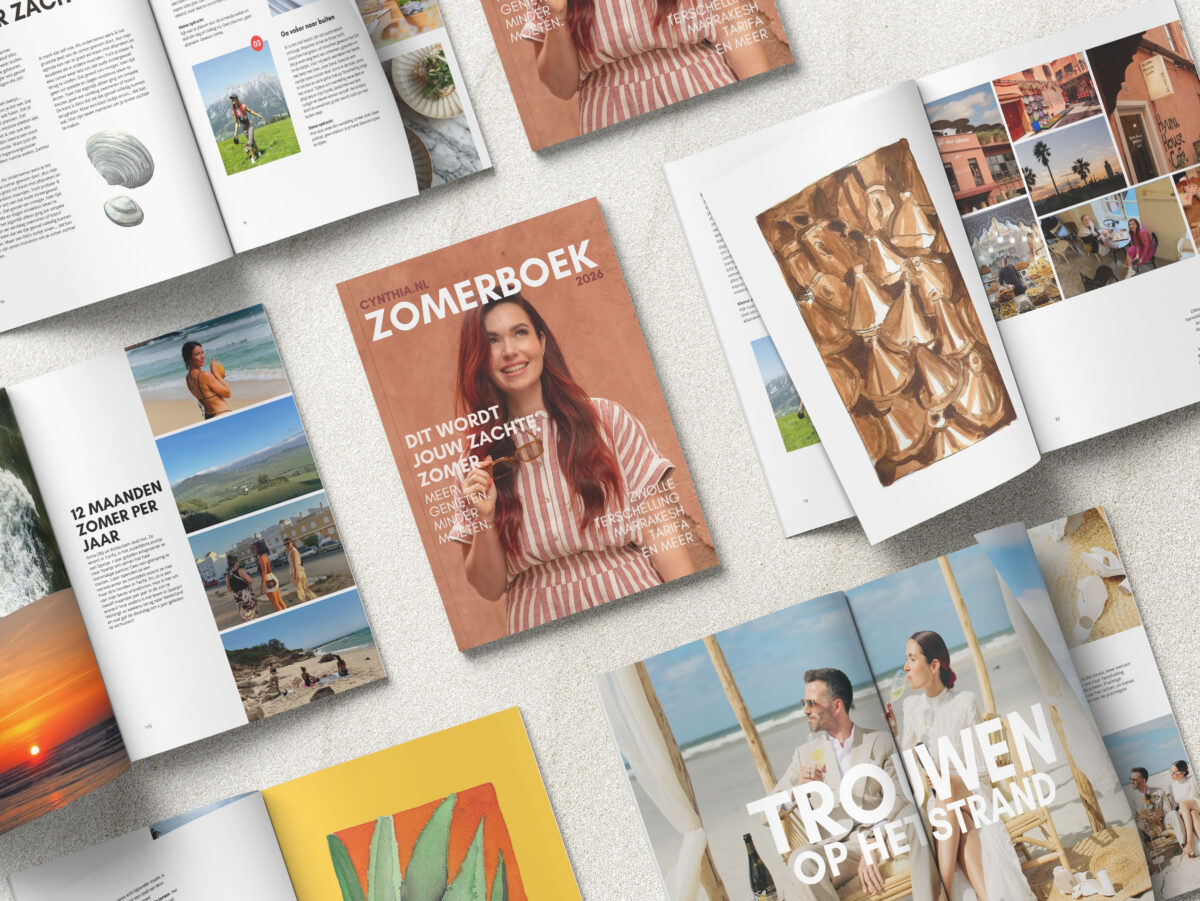 Na het Japan Magazine dat ik twee jaar geleden maakte, wist ik: dit soort projecten wil ik vaker doen. Iets tastbaars. Iets waar je echt even voor gaat zitten. Iets wat niet verdwijnt in een feed, maar gewoon bij je op tafel ligt. En zo ontstond het Cynthia.nl Zomerboek.