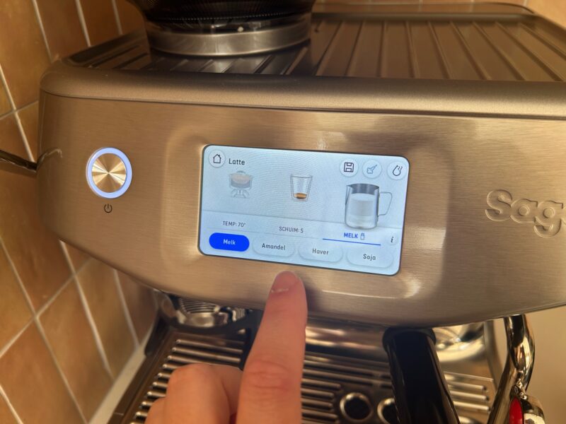 Wat ik heel fijn vind, is dat de machine je letterlijk bij de hand neemt. Het kleuren-touchscreen laat stap voor stap zien wat je moet doen: van het malen van de koffie tot het opschuimen van de melk. Je hoeft dus geen doorgewinterde barista te zijn om hiermee uit de voeten te kunnen.