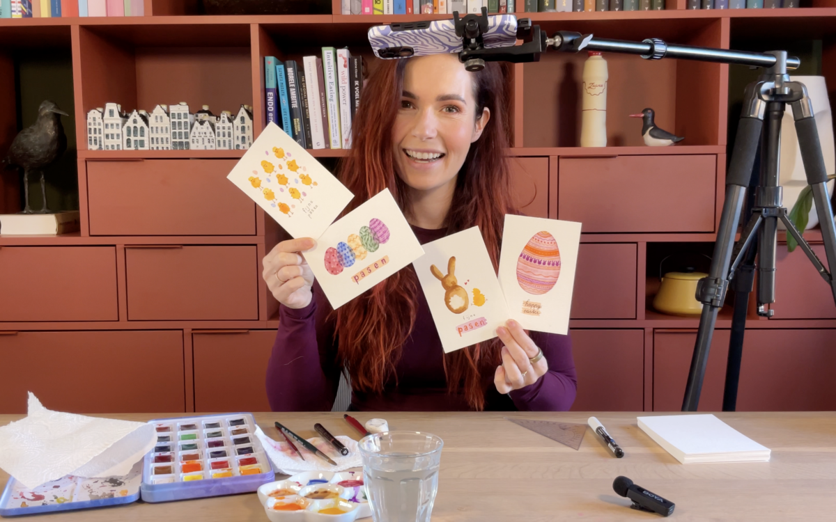 Je krijgt 4 uitgebreide video’s (totaal 3 – 3,5 uur schilderplezier) en een jaar lang toegang. Dus als je deze Pasen geen tijd hebt, kun je hem volgend jaar gewoon weer doen!