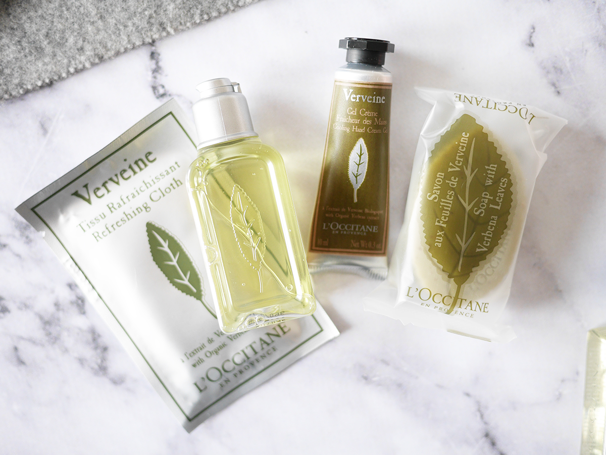 Als laatste een setje met Verveine producten. Ik houd zo van de geur en smaak van verveine, zo lekker fris en citrusachtig en tóch krudig. Hoe handig, dat doekje links? Die gaat de volgende keer mee in m’n toilettas in het vliegtuig. Daarnaast een douchegel, verfrissende handcreme en een zeep.