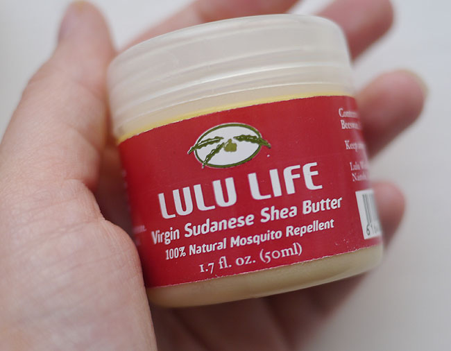 Dit is shea boter met ‘mosquito repellent’ erin. Dat is dus tegen muggen, alleen zit hier geen DEET in. Kost €6,95 voor een potje van 50ml.