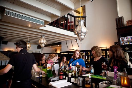Gezellig wat drinken aan de bar. Ik zie niet precíes wie er staan maar volgens mij Kim, Milou, Jildou, Yvette, Eunice, Janneke en Laine