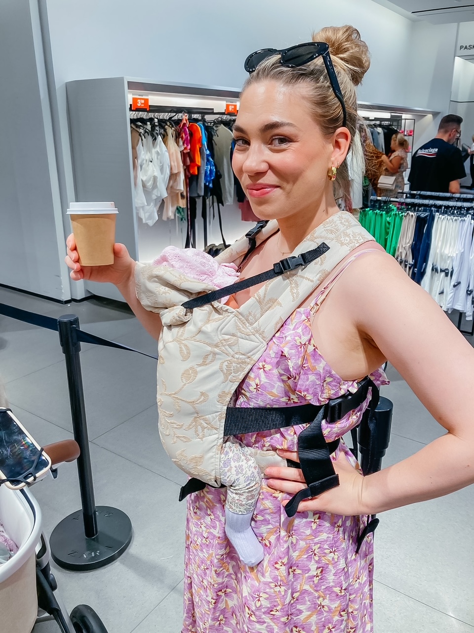 Novae HAATTE de kinderwagen in het begin waardoor ik me soms heel opgesloten voelde. Bovendien had ze echt moeite met in slaap komen waardoor ik soms dagen lang met die draagzak maar om liep, heen en weer, door de woonkamer.