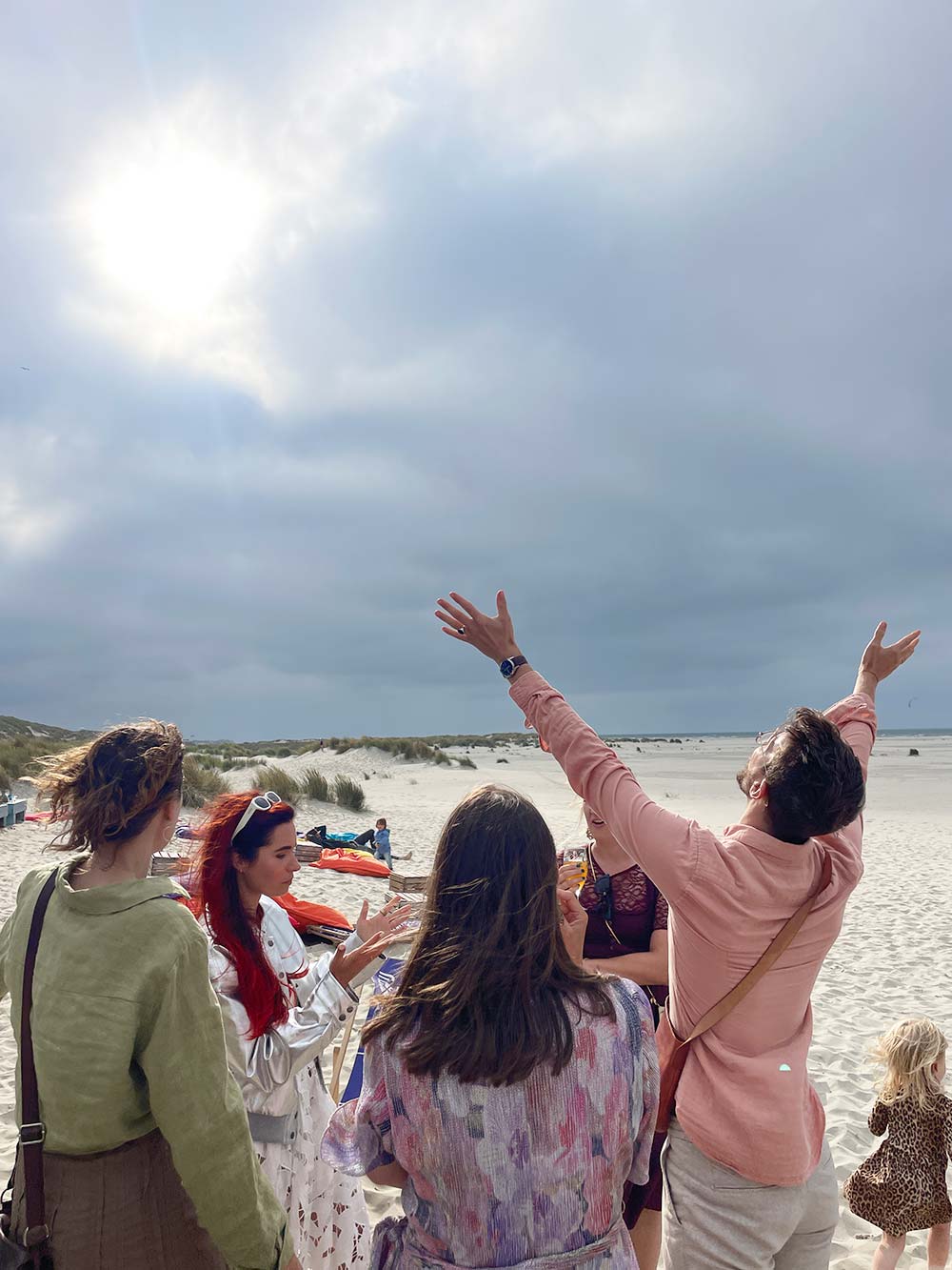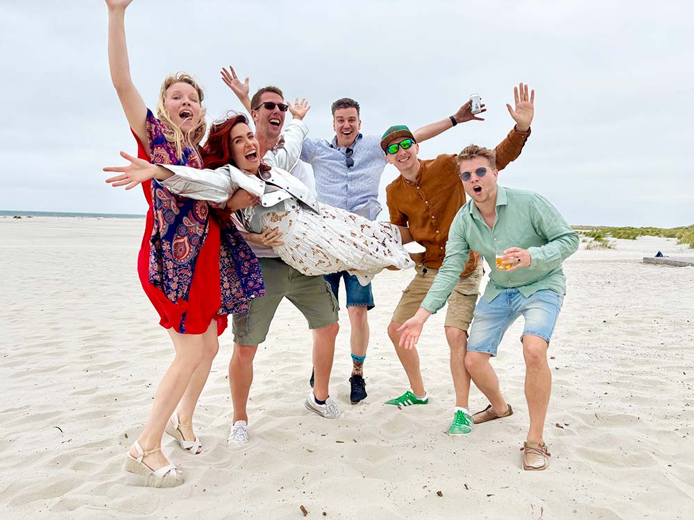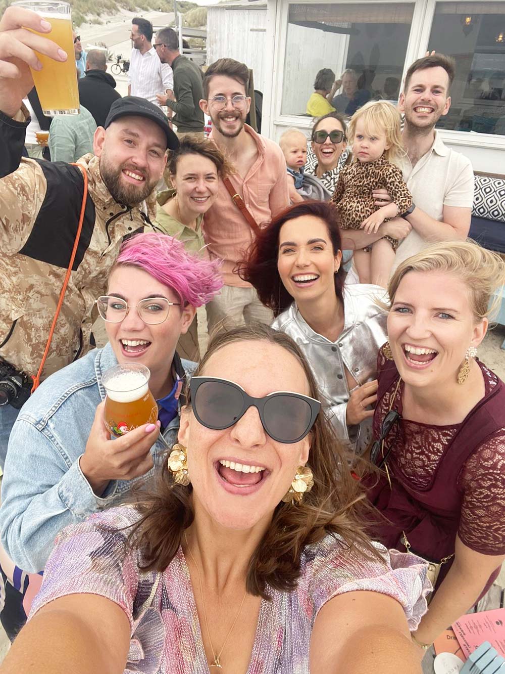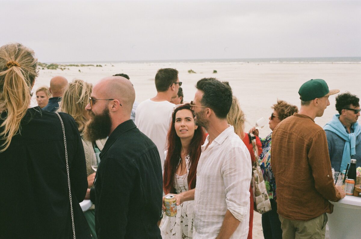 Het was eenvoudig, intiem, en we zijn zó blij dat we dit gedaan hebben! Eerst wilden we dit niet doen, maar we hebben in mei toch de knoop doorgehakt om wel een borreltje te organiseren. Bijna iedereen is toch al op Terschelling, en we vinden het heel erg leuk om onze beste vrienden en naaste familie alvast te zien. Het was voor ons ook een hele ontspannen manier om het weekend te starten. Voor mij viel alle spanning weg toen ik bij deze borrel onze geliefden zag. Het was een soort reminder: oh ja, dit zijn allemaal mensen waar wij van houden en die van ons houden, dit wordt gewoon een fantastische dag morgen, niks om nerveus voor te zijn.