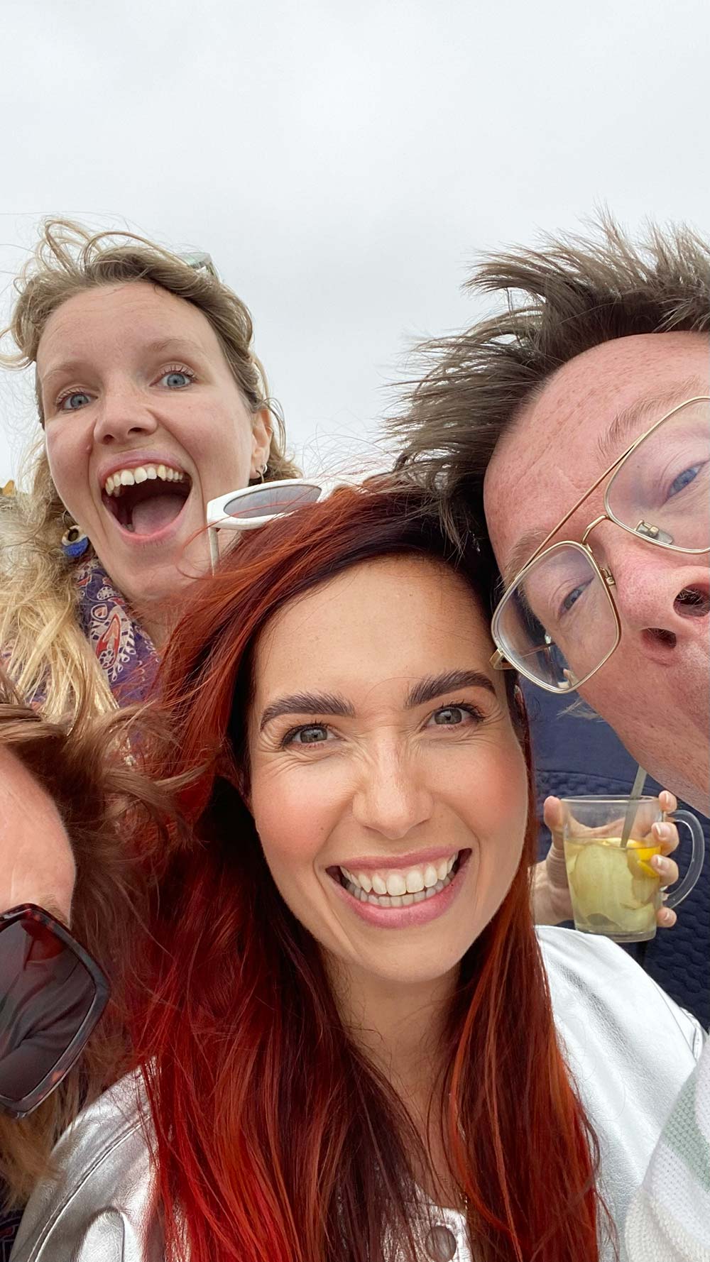 Er kwam even ZON! Er was warm en zonnig weer voorspeld, maar vlak voor de borrel sloeg het om naar grijs en windy. Maakte niks uit, het was ontzettend gezellig, en we hadden allemaal een lekkere windcoupe.