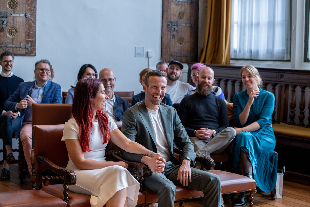 In eerste instantie dachten we: laten we het gewoon bij de balie regelen, een kwestie van handtekeningen zetten en klaar. Maar naarmate we verder dachten, kregen we toch zin om er een klein feestje van te maken. Niet groot of uitbundig, maar gewoon met een paar dierbaren erbij, een moment om stil te staan bij de verbinding die we officieel maken. De Schepenzaal in Zwolle was de perfecte plek voor dat intieme gevoel.