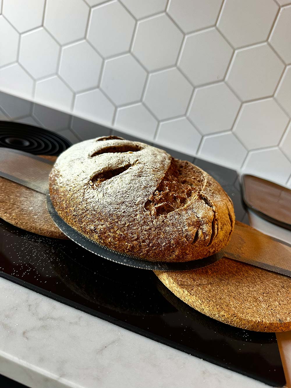 Mijn eerste volkoren zuurdesem thuis gebakken! Nog een beetje plat, maar door de weken heen weet ik het steeds wel wat te verbeteren. Wat een leuk proces en het is zó lekker.