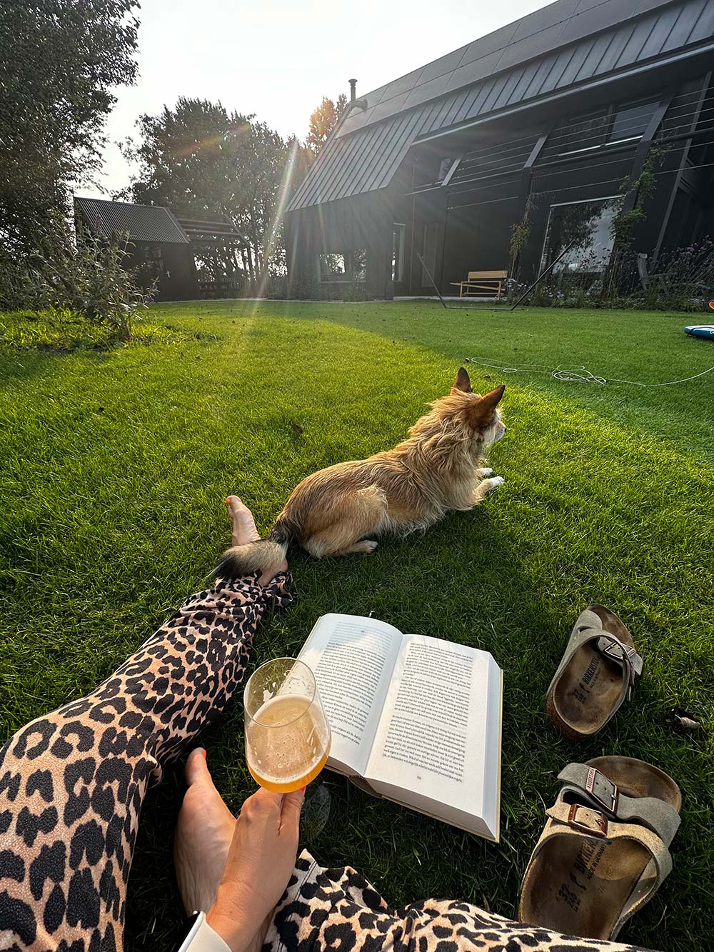 Bij mijn schoonouders chillen in het gras met Kees.