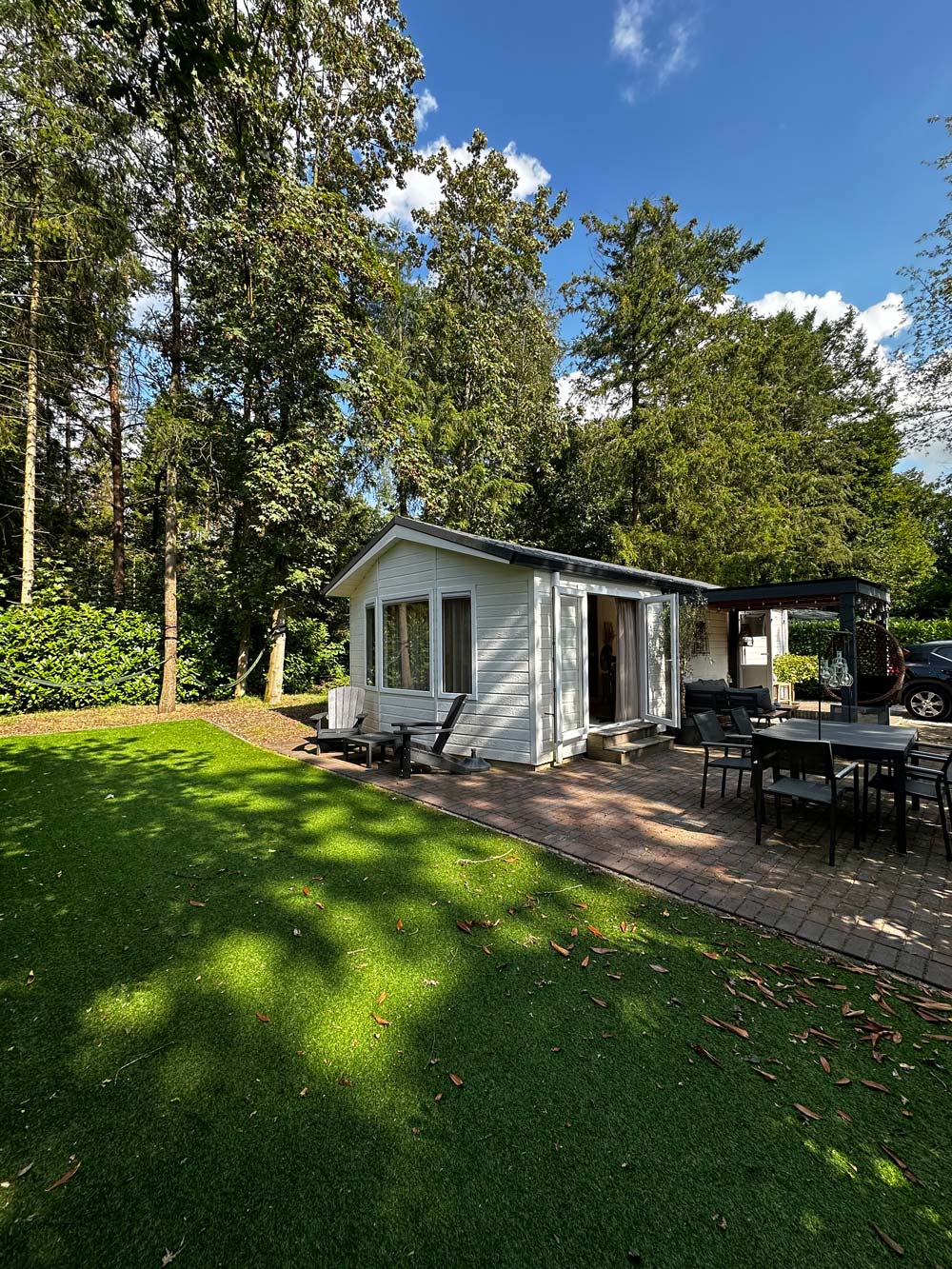 Het huisje dat ik huurde. Aan de rand van een vakantieparkje, wat echt een topkeuze was. Muisstil.