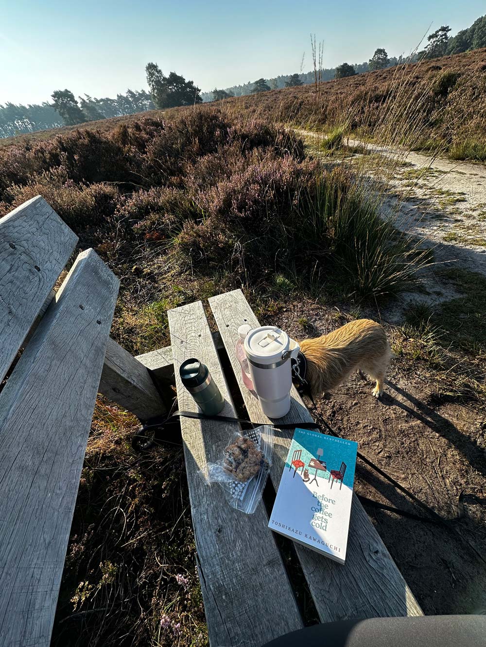 Koffie en wat lekkers mee en dan lezen op een bankje op de heide. Kan het beter?