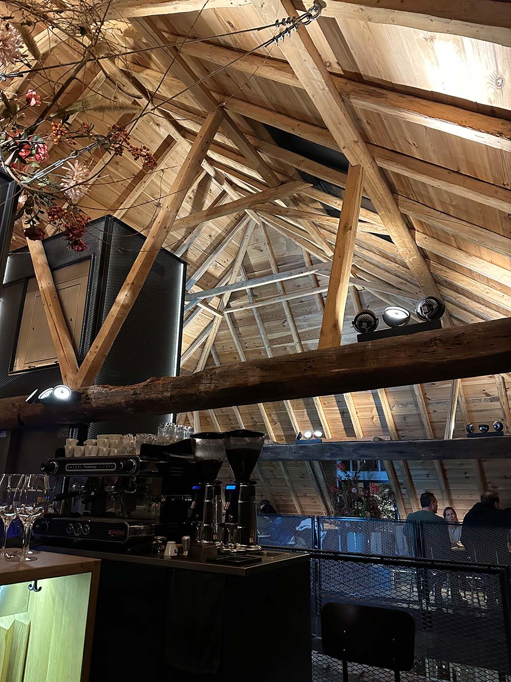 Mooie zaak ook, wij zitten op zolder en je kijkt hier zo mooi tegen al die houten balken aan.