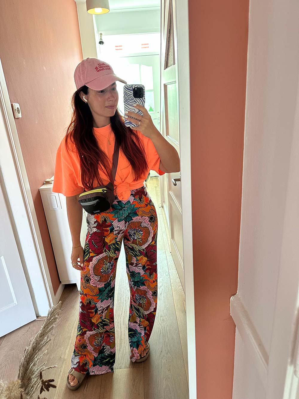 Lekker fleurig op de maandag. De outfit is van Stieglitz, tasje Patagonia, sandalen Birkenstock.