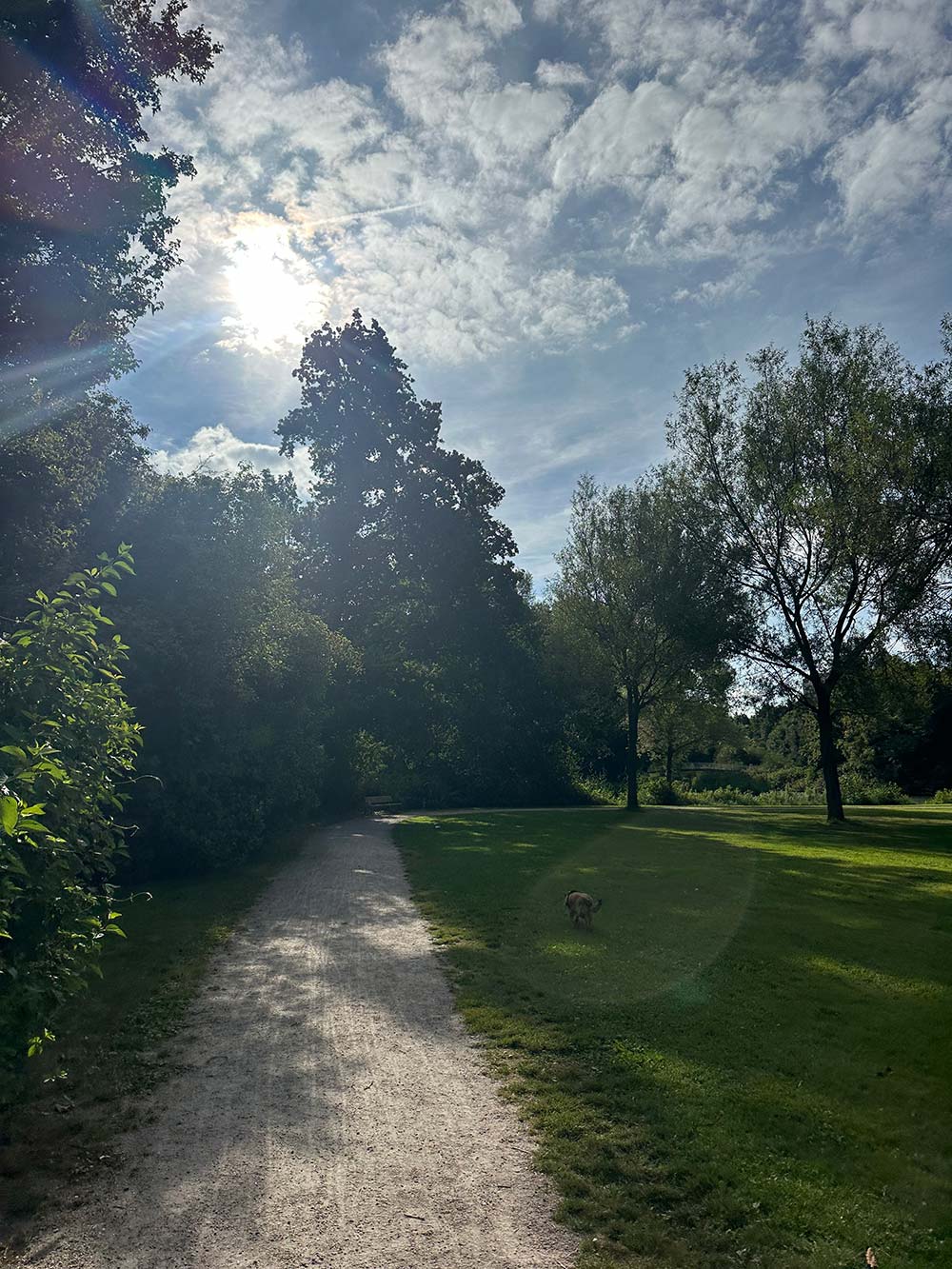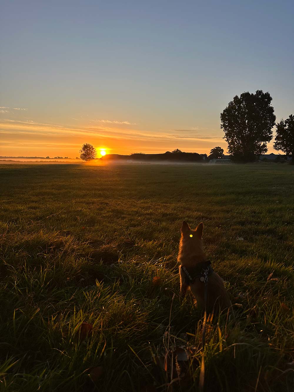 Kees vond het ook chill. Het was echt prachtig, eerst hing er nog een soort nevel over de velden en dat trok steeds meer weg naarmate de zon hoger ging staan.