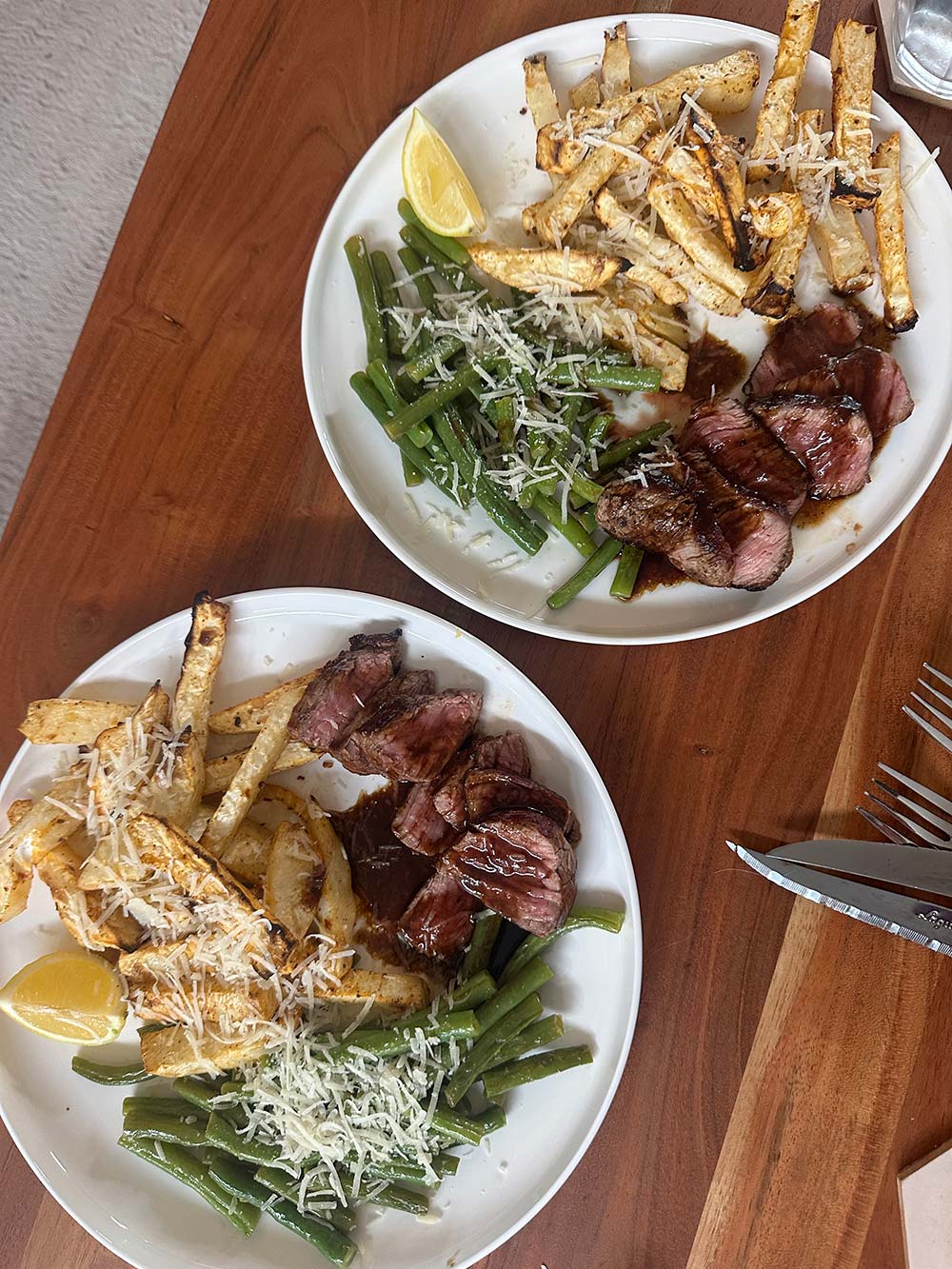 Dit was ook nice van HelloFresh: steak met knolselderij frites en boontjes.