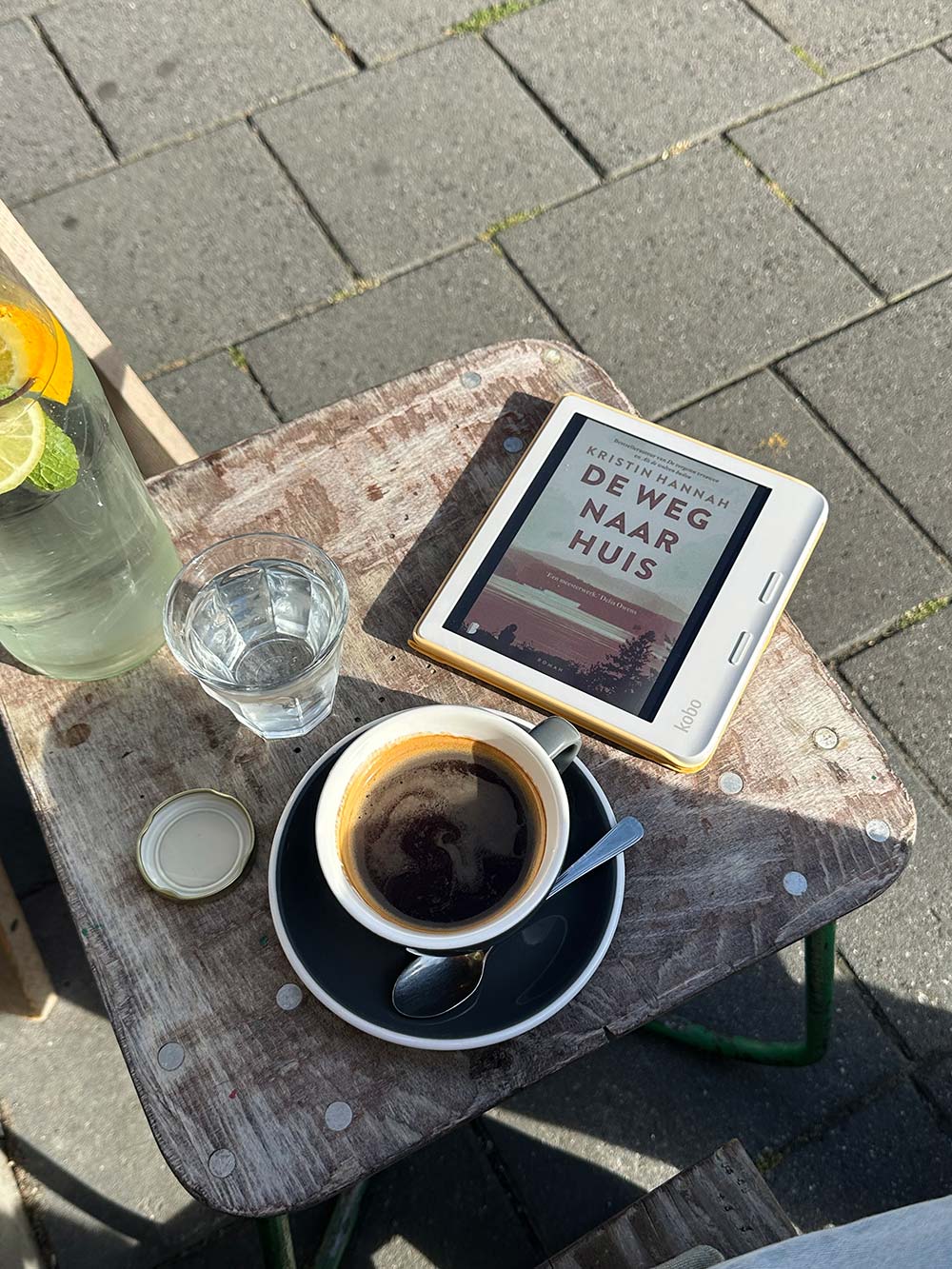 Ook fijn, op dinsdagochtend even koffie en een boek buiten bij Lisa’s Deli. Ik heb echt wat moeite om er deze week ‘weer in te komen’, en dat is helemaal niet erg, want daar had ik qua werk en afspraken al wel rekening mee gehouden. Even wat tijd om rustig weer te wennen aan het ‘gewone’ leven, haha. Ik ben heel moe en ook een beetje verdrietig dat alles nu voorbij is, of zo? En tegelijkertijd heel dankbaar en enorm aan het nagenieten.