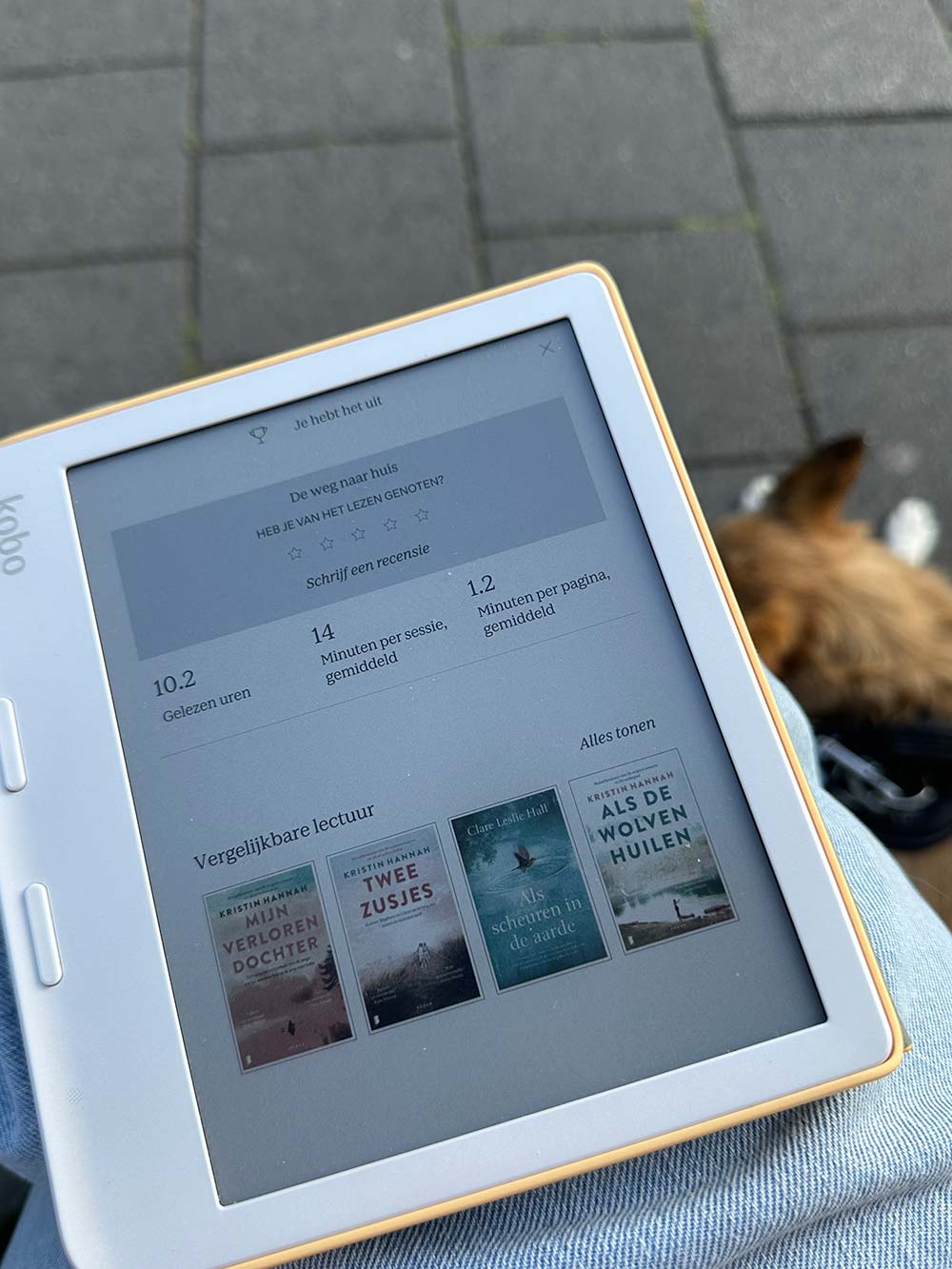 Bij Lisa’s Deli las ik De weg naar huis van Kristin Hannah uit. Ik vond Als de wolven huilen echt waanzinnig mooi, het eerste boek dat ik van haar las. Ik vond De weg naar huis ook goed, maar wel wat ‘lastiger’ of zo, ik vond dat er veel herhaling in zat en dacht op de helft soms: jaaaa, nu weet ik dit wel. Alsnog een goed boek hoor, waar ik echt van genoten heb.