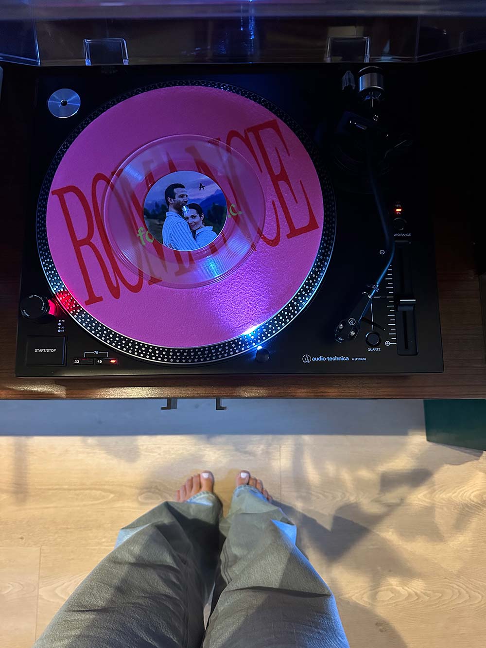 Ook luisteren we naar het cadeau dat we van Jorien kregen: zij gaf ons een custom made vinyl plaat. Hierop had ze ‘de nummers’ van onze ceremonie tijdens de bruiloft gezegd, gemengd met voice memo’s van geliefden met gelukswensen. ZO ontzettend lief.