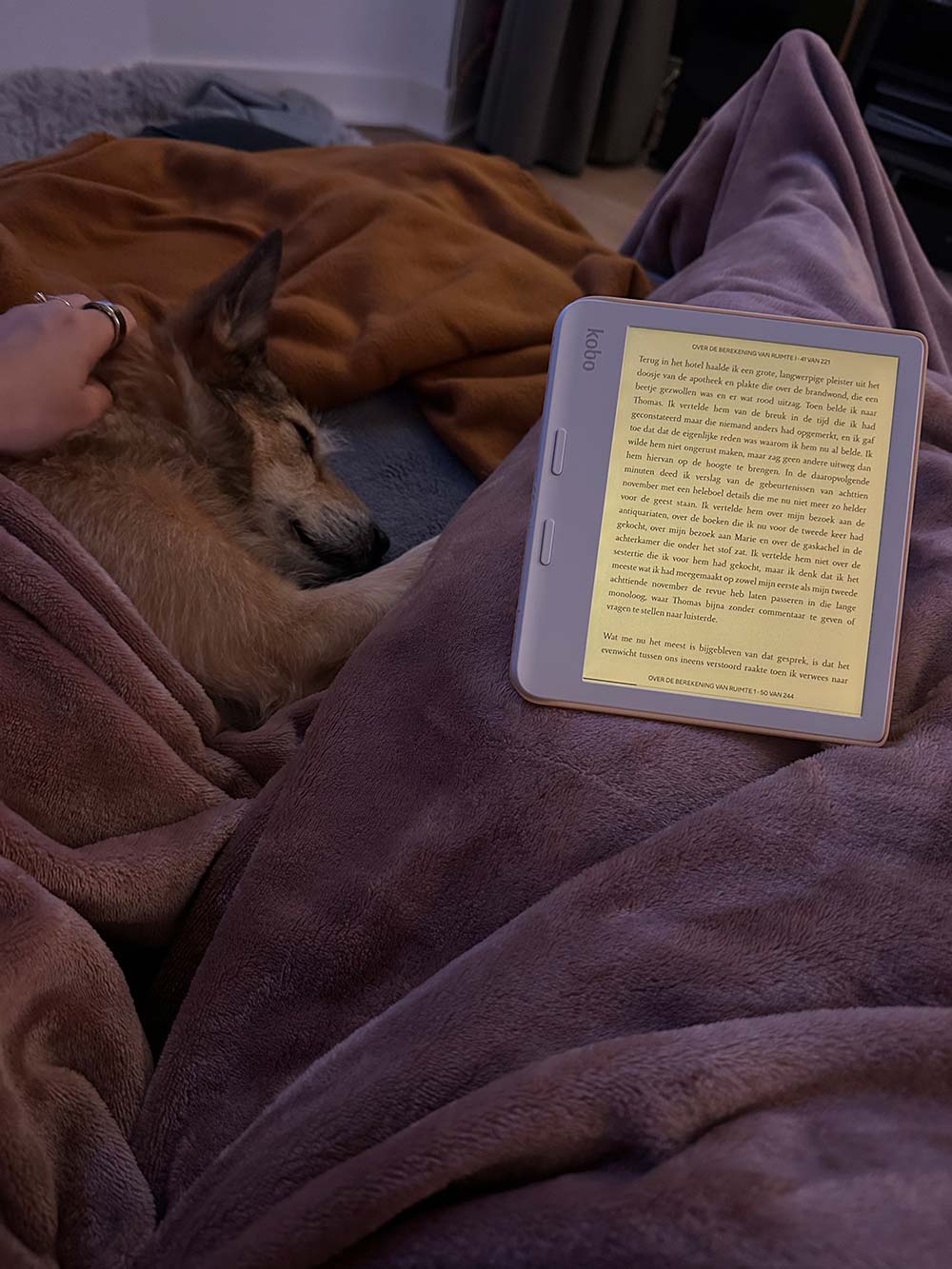 Dit zijn zulke fijne momenten. ’s Ochtends vroeg, cosy met Kees op de bank ontbijten met een boek erbij.
