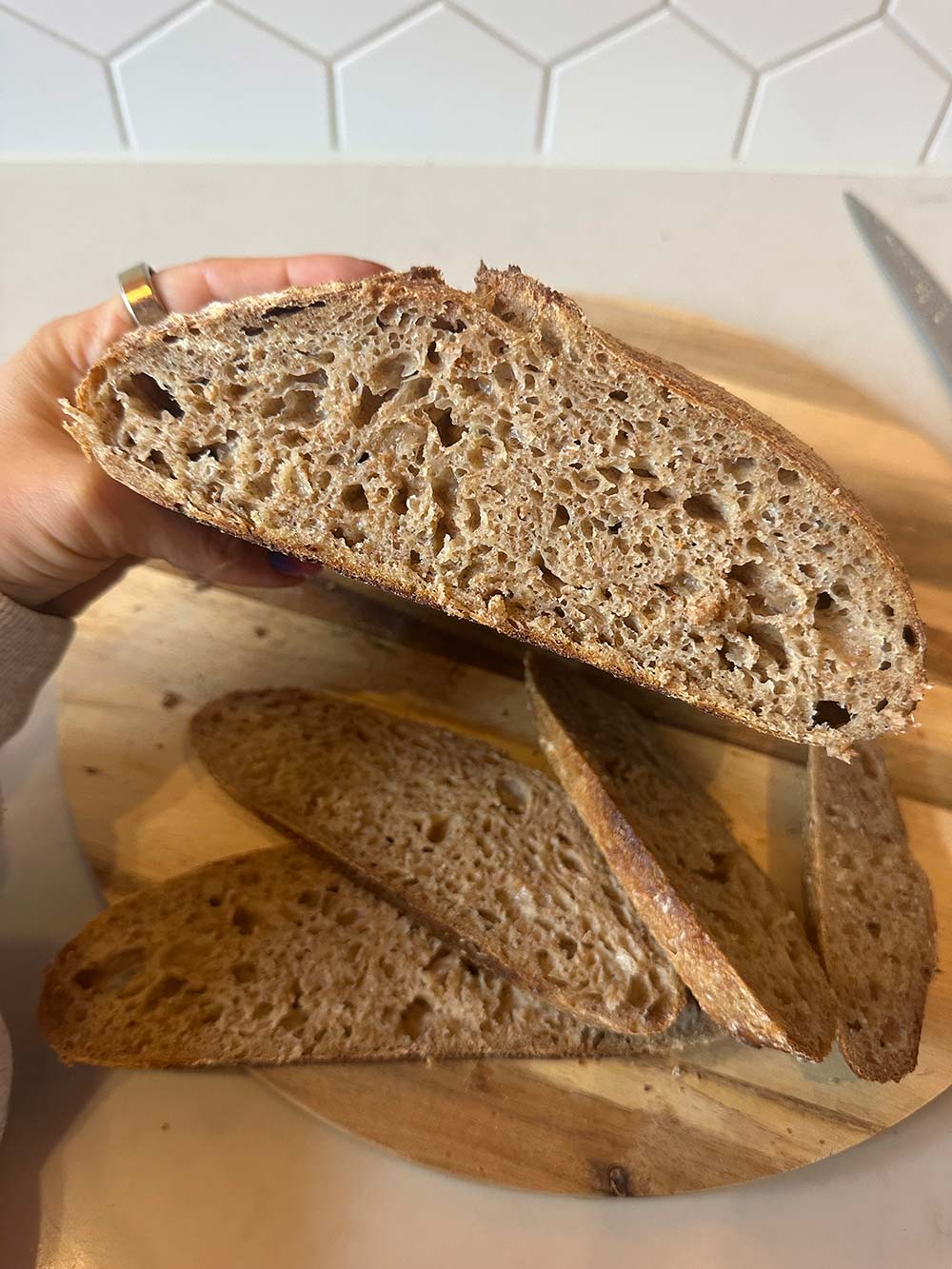 Goed gelukt en heeel lekker. Ik doe dit nu iets meer dan een jaar en wat is dit een heerlijke ontdekking, zuurdesem bakken. Ik vind het zo heerlijk smaken en ook heel satisfying om zelf brood te bakken.