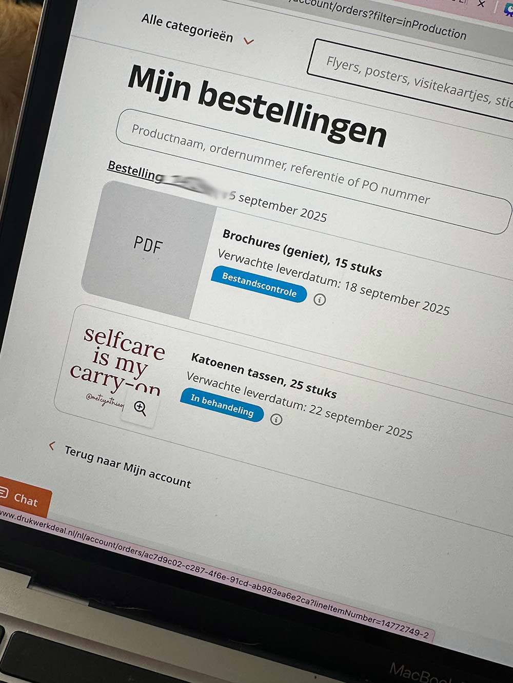 Voor de Selfcare Retreat begin november heb ik het drukwerk besteld en ook iets extra’s erbij gedaan… Vind ik altijd zo leuk, en dan maar wachten tot het geleverd is om te zien hoe het er écht uitziet.