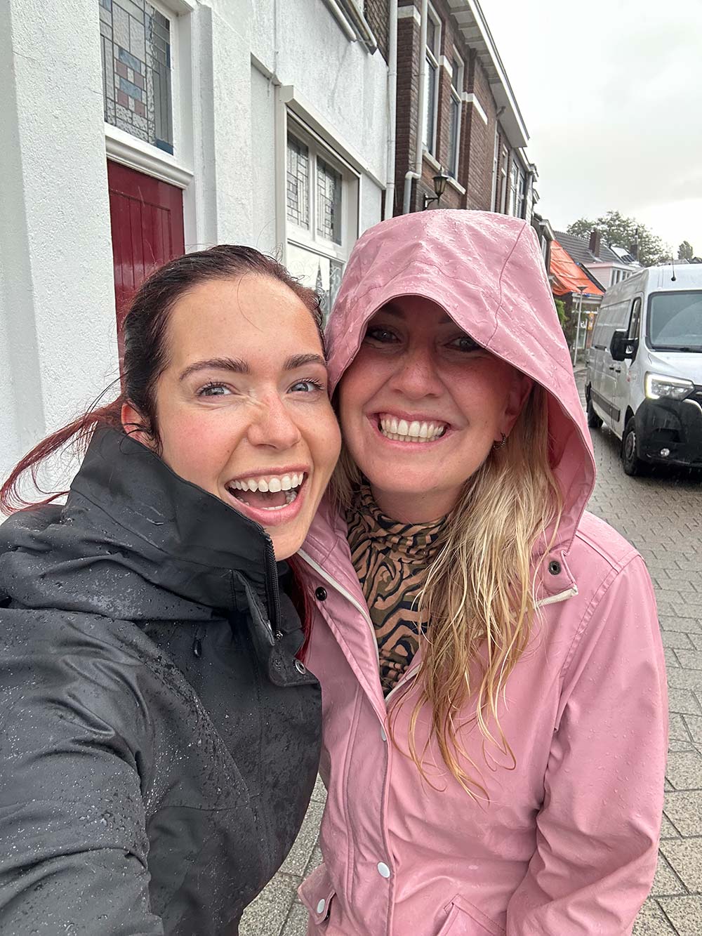 Wandelmeeting met Anieke, nuttig én gezellig. We laten ons niet tegenhouden door een plensbui!