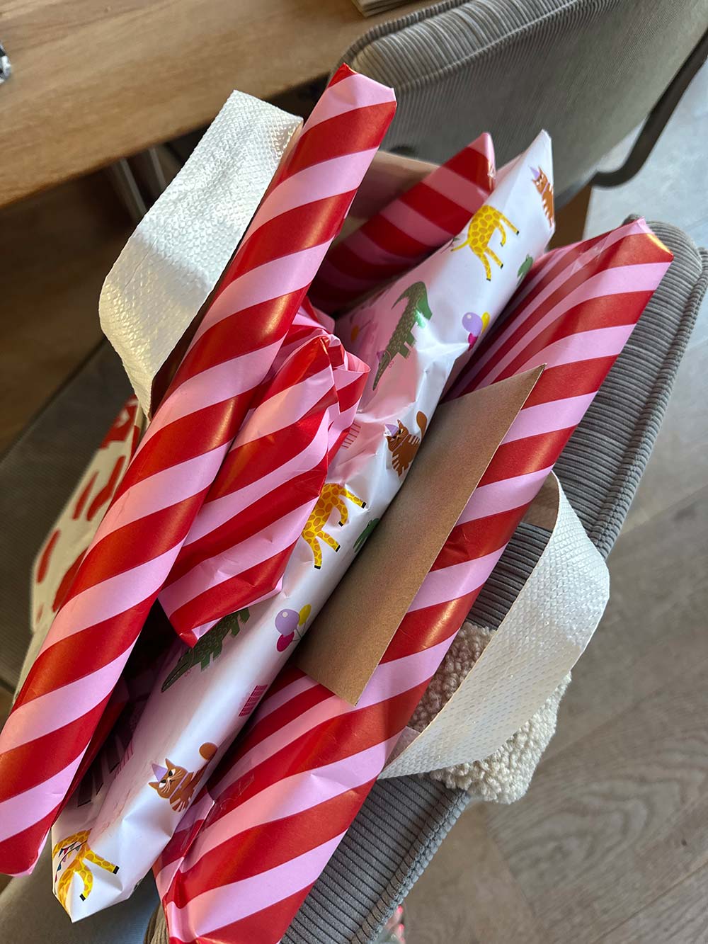 Vrijdag ga ik spontaan eten bij Sebas, Eveline en de kinderen in Breda en ik pak nog even allemaal cadeautjes in. Ik had al cadeaus in huis voor allerlei verjaardagen dus die kon ik mooi geven. Love that.