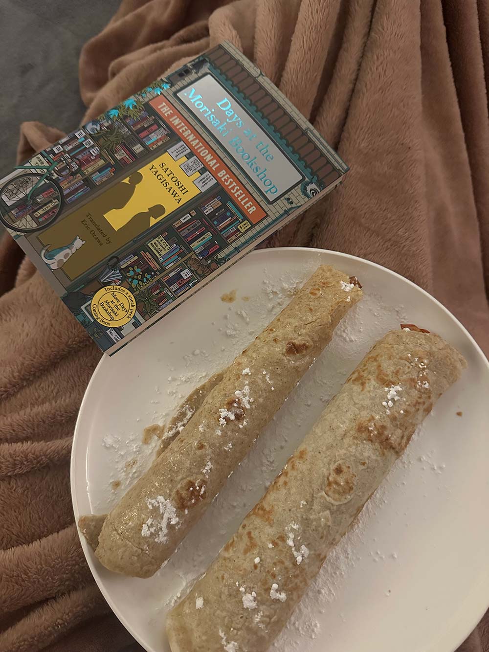 Hmmmm: pannenkoeken leftovers als ontbijt.