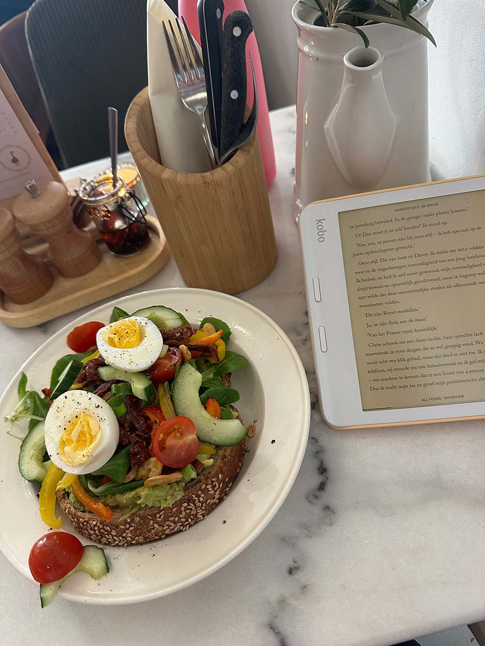 Een croiffle tijdens het verjaardagsontbijt van Hanneke.